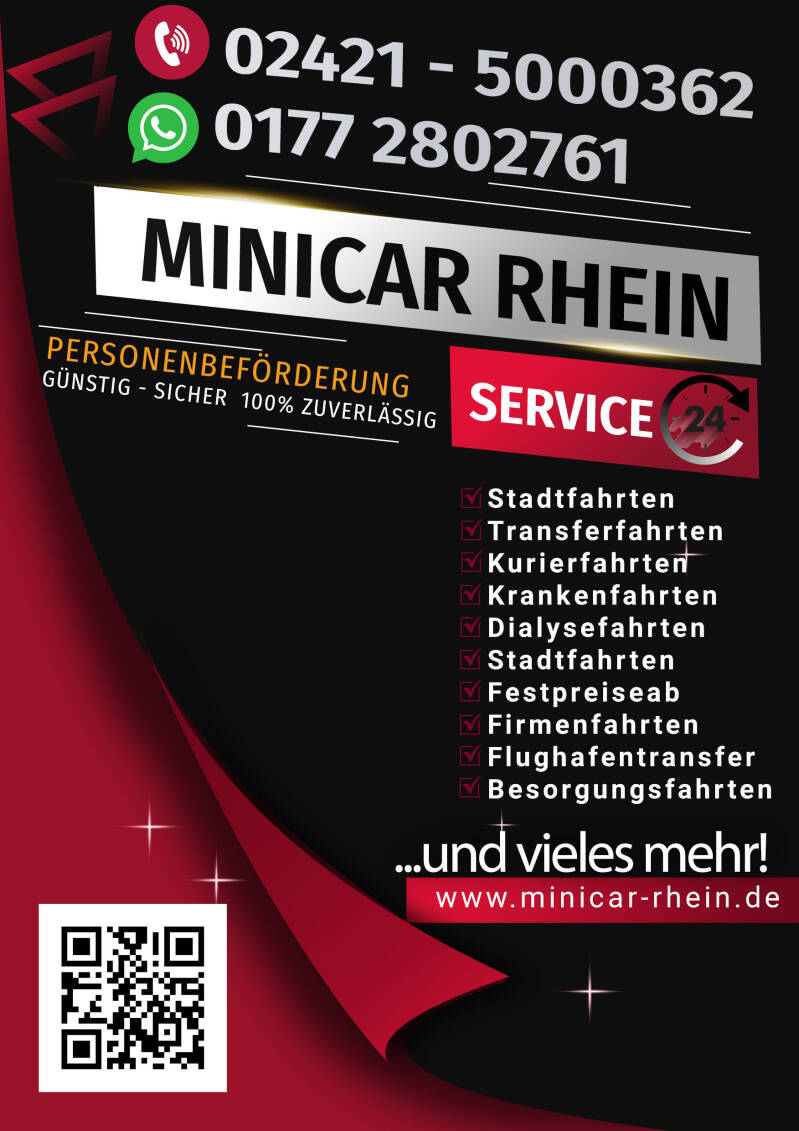 Minicar-Rhein verdankt seinen guten Ruf unserem kompromisslosen Einsatz für jeden unserer Kunden. Wir wissen, dass sich Ihre Anforderungen auch noch kurzfristig ändern können. Für uns ist es kein Problem, unsere Leistungen rasch anzupassen, damit Ihrem Erfolg nichts im Wege steht. Lesen Sie weiter, um mehr darüber zu erfahren, was wir für Sie tun können.